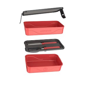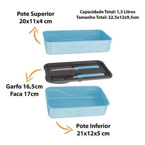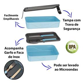 Um produto desenvolvido para organizar e facilitar o transporte de alimentos, que acompanha talheres em inox, superfície polida de fácil higiene e cores modernas.