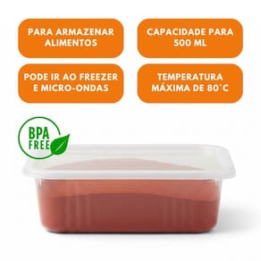 Aplicação: Ideais para armazenar porções de comidas, saladas, bolos, tortas, salgados, entre outros. Este produto pode ir ao micro-ondas na temperatura máxima de 80°C. Mantenha em local protegido do calor e umidade. Em caso de descarte, oriente seu cliente para que o faça em local apropriado.
