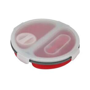 A marmita Retrátil Redonda da Mor veio para incentivar uma alimentação mais saudável. Resistente e super prática, possui dois compartimentos para organizar as porções de alimentos de acordo com a sua necessidade, ambos com capacidade para 550ml. Por ser retrátil, a marmita ocupa pouco espaço na hora de guardar. Pode ser levada ao micro-ondas, exceto a tampa, para que você desfrute de sua comida sempre quentinha e saborosa. Acompanha um garfo e uma colher dobráveis que vem acoplados à tampa, além de um espaço que serve para acomodar seu tempero favorito. Produzida com materiais de alta qualidade que garantem durabilidade ao produto e fácil manuseio, essa marmita vai acompanhar você por muitas refeições Especificações Material Silicone Cor Predominante Vermelho Informações Importantes Medidas fechado - Ø20,5cm x 4cm Medidas aberto - Ø20,5cm x 7,5cm Medidas talher - 16,5cm x 2,9cm Observações Os objetos que ambientam as imagens não acompanham o produto Medidas: Altura 23,50 Centímetros Largura 5,00 Centímetros Comprimento 21,00 Centímetros Peso 309,00 Gramas