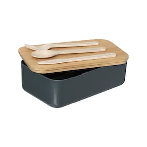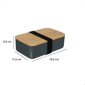 Possuindo uma tampa em bambu, este marmiteiro também acompanha um kit de talheres composto por uma colher, um garfo e uma faca. Além disso, sua cor cinza é moderna e elegante, perfeita para quem busca um produto que alia funcionalidade e design.