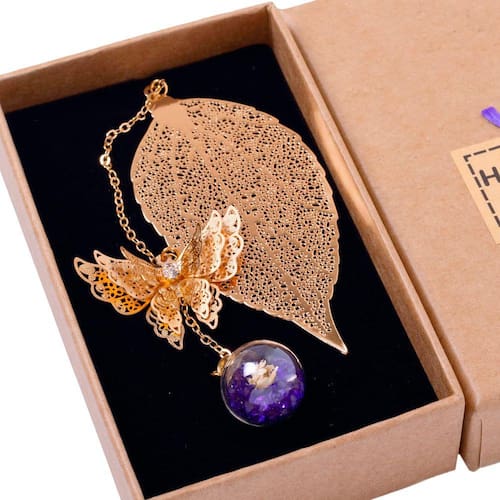 Design delicado e artesanato feito à mão: marcador feito de folha de metal de estilo vintage com um pingente de boleta 3D, flor seca e miçangas de cristal, cria uma estética perfeitamente combinada. É um pequeno presente fofo para leitoras de todas as idades
