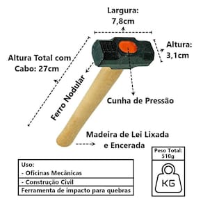 Marreta Premium Cabo de Madeira Envernizada Cunha Aço 500g, é uma ferramenta maior e mais pesada do que um martelo comum. É utilizado por quem precisa de força para quebrar ou demolir uma superfície. Sempre possui uma cabeça de ferro para causar ainda mais impacto.