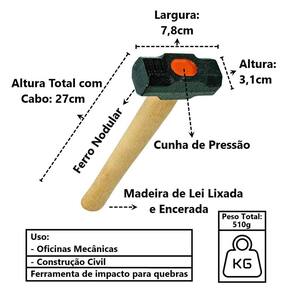 Marreta Cabo de Madeira Lixado Encerado Cunha Pressão 500g, é uma ferramenta maior e mais pesada do que um martelo comum. É utilizado por quem precisa de força para quebrar ou demolir uma superfície. Sempre possui uma cabeça de ferro para causar ainda mais impacto.