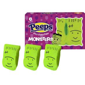 Monster Peeps !!!Esses docinhos são uma explosão de doçura e diversão e são marshmallows muito macios e fofinhos.Perfeitos para adicionar um toque assustadoramente delicioso às suas festas e sobremesas.Com olhos encantadores e uma aparência irresistível, esses monstros de marshmallow vão conquistar seu coração e seu paladar.Uma experiência única para os amantes de doces. Marca: PeepsComposição: açúcar, xarope de milho, gelatina, cera de carnaúba, sabores naturaisAlergênicos: não contém glútem; pode conter leite.Origem: Estados UnidosPeso: 42g Marca: Peeps