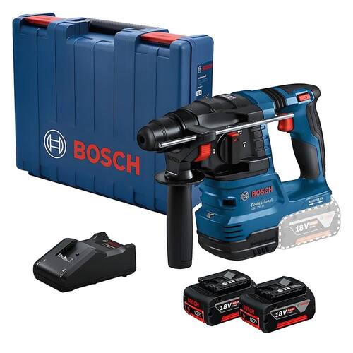 O martelete rompedor bosch gbh 185-li sb 18v é uma ferramenta robusta, projetada para perfurações exigentes em diversos materiais, impulsionada pelo potente motor brushless, que oferece maior eficiência energética e durabilidade ao eliminar escovas de carvão. funcionalidades principais: potência e eficiência energética: equipado com motor brushless, o martelete rompedor proporciona potência consistente e eficiente, garantindo um desempenho ótimo em perfurações robustas. segurança avançada: incorpora o sistema kickback control, que atua instantaneamente para desligar a ferramenta em caso de travamento do acessório, reduzindo significativamente o risco de acidentes durante o uso. conforto do operador: a tecnologia vibration control reduz a vibração transmitida para as mãos do operador em até 50%, garantindo uma experiência mais confortável durante o uso prolongado da ferramenta. compatibilidade com coletor de pó: compatível com o coletor de pó automático gde 12, o martelete permite um ambiente de trabalho limpo e livre de sujeira, melhorando a eficiência e a segurança do operador. versatilidade de aplicações: ideal para uma ampla variedade de atividades, como montagem de painéis, instalações diversas e fixação de prateleiras, proporcionando versatilidade e praticidade em diferentes projetos. - especificações técnicas: :: impacto por minuto: 0-4.675ipm :: n de rotações: 0-1800rpm :: força de impacto: 1,9 :: sistema de encaixe: sds plus :: motor: brushless :: peso: 2,3kg - conteúdo da embalagem: :: 1 martelo perfurador a bateria gbh 185-li :: 2 baterias de 4ah :: 1 carregador gal 1840 :: 1 empunhadura auxiliar :: 1 limitador de profundidade :: 1 manual de instruções da ferramenta :: 1 manual de instruções do carregador :: 1 maleta plástica