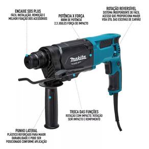 Especificações: Potência 800w; Rotações 0 - 1.200 rpm; Impactos 0 - 4.500 ipm; Força: 2,3 joules; Capacidades concreto 26 mm; Aço 13 mm; Madeira 32 mm; Dimensões cxlxa 362 x 71 x 194 mm; Peso 2,7 kg. Itens que acompanham: -01 punho completo; -01 limitador de profundidade; -01 talhadeira marca disponível no momento da compra ; -01 ponteiro marca disponível no momento da compra ; -01 adaptador de mandril marca disponível no momento do pedido ; -01 mandril marca disponível no momento do pedido; -01 kit com 4 brocas sds plus marca disponível no momento do pedido ; Marca: Não Informado