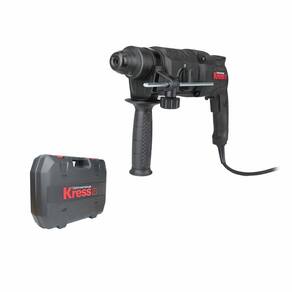 Características Gerais do Produto: - Modelo: KUX12P - Marca: Kress - Alimentação: Energia - Cor: Preto - Tensão: 220V - Especificações: 3 funções: broca, broca de martelo pneumático e cinzelamento (parada de rotação).; Motor potente para oferecer um maior diâmetro de perfuração em concreto de até 26 mm.; Controle de velocidade variável, ótimo controle em uma variedade de materiais.; - Potência: 850W - Rotação: 1300 RPM - Impacto: 5500 IPM - Energia de Impacto: 3 Joules - Capacidade: Maxima: Aço 13mm/Concreto 26mm/Madeira 30mm - Características: Mandril SDS-Plus para troca rápida de broca.; Batente de profundidade de metal de ajuste rápido para perfuração precisa.; - Peso: 2,8kg - Itens que Acompanham: Punho auxiliar.; Limitador de profundidade.; Maleta.; - Garantia direto com o Fabricante: 1 Ano (12 meses)