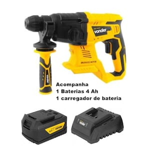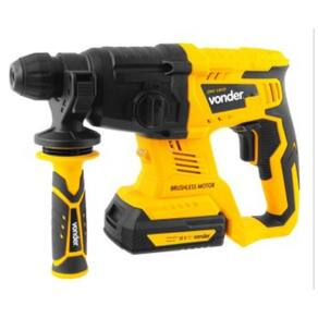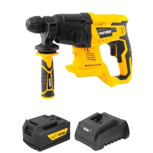 Este equipamento utiliza um modelo de bateria que pode ser intercambiável (não acompanha), ou seja, uma bateria que é compatível com outros modelos de ferramentas a bateria VONDER. Por isso, em sua próxima compra de ferramenta a bateria VONDER, procure um modelo que comece com a referência "I", ou que esteja identificado com o selo "Bateria Intercambiável VONDER". Desta forma, você garante modelos mais econômicos, sem a necessidade de aquisição de novas baterias e carregadores para uso em seu equipamento. Possui rotação com ou sem impacto e função rompedor, adequando-se a diferentes necessidades de uso. Seu sistema de encaixe tipo SDS PLUS facilita a troca rápida do acessório. Conta também com cabo tipo "D" com revestimento emborrachado, punho auxiliar com sistema de ajuste rápido do limitador de profundidade, conferindo praticidade e conforto ao operador, e motor Brushless (sem escova de carvão), garantindo maior durabilidade, resistência e desempenho.