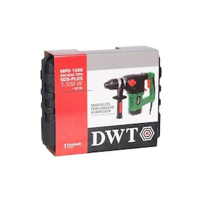 Martelete perfurador/rompedor 1500w sds plus mpd1500 - dwt Indicado para perfurar e romper concreto e alvenaria. Utilizando haste adaptadora tipo sds plus e mandril adequado, pode perfurar madeira, metal, plástico, entre outros. Não acompanha haste e mandril. Na função rompedor, deve ser utilizado somente para pequenas operações. Nunca utilizar a haste adaptadora na função impacto. Possui 4 ajustes da função do martelete: 1 manopla para ajuste "perfurador" ou "rompedor" e uma alavanca para ajuste "com impacto" ou "sem impacto", que facilitam o trabalho do operador. Conta com encaixe tipo sds plus, que facilita a troca rápida do acessório. Possui cabo tipo "d" com revestimento emborrachado, punho auxiliar que confere maior conforto ao operador e sistema de amortecimento que diminui a vibração do equipamento. Tipo de encaixe: tipo sds plus Potência: 1.500 w Tensão: 127v Força de impacto: 5,5 j Capacidade máxima de perfuração: Em concreto: 32,0 mm Em madeira: 42,0 mm Em aço: 13,0 mm Impacto por minuto: 4.350 ipm Rotação: 880 rpm Tipo de velocidade: direta Sistema de reversão: não reversível Ajuste do sistema de trabalho do martelete: 2 manoplas 1: perfurador / rompedor - 2: com impacto / sem impacto Segue norma: abnt nbr iec 60745-1 e abnt nbr iec 60745-2-6 Acompanha: 1 maleta plástica e 1 punho auxiliar Marca: Não Informado