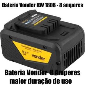 - Modelo da bateria: IBV 1880 - Tipo de bateria: Íons de lítio - Tensão: 18 V - Capacidade da bateria: 8,0 Ah - Indicador de bateria fraca: Sim - Massa aproximada peso : 0,93 kg