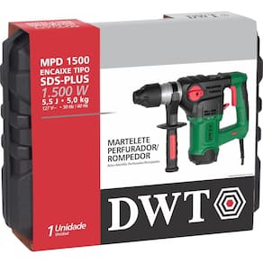 1 Martelete perfurador/rompedor. Acompanha: 1 maleta plástica, 1 punho auxiliar e 1 coletor de pó