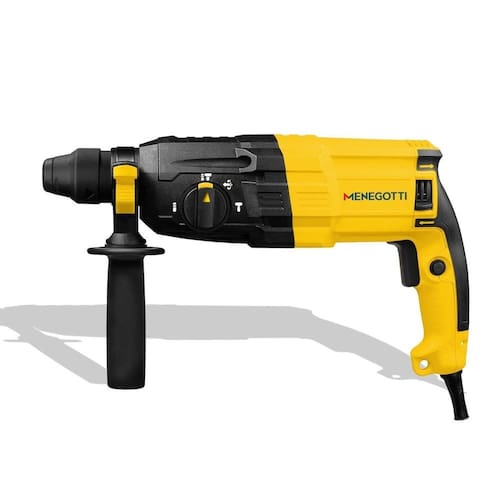 O Martelete Perfurador Rompedor 800W 3J 3Kg e? uma ferramenta versa?til, ideal para tarefas de pequenas demolic?o?es e perfurac?o?es de concreto, alvenaria e revestimentos. Com punho emborrachado para mais conforto e controle, oferece alto desempenho e durabilidade para profissionais que exigem pote?ncia e durabilidade, tornando-o uma excelente escolha para profissionais que exigem pote?ncia e durabilidade em suas ferramentas. Ajuste de Velocidade: Não Ambiente Principal: Comércio Composição: Aluminio e partes plásticas Comprimento: 38,5 cm Consumo de energia aproximado: 2,4 kW/h Energia de Impacto: 3 J Força de impacto: 3 J Frequência: 60 Hz Funcionamento: Elétrico Itens Inclusos: 1 Martelete Perfurador e Kit Ferragem Largura: 11 cm Mandril: Não Manual de Montagem e Instalação: https://product-hub-prd.madeiramadeira.com.br/813617751/documents/c08ecc49-0d99-46c3-bf57-af79b133b89a3132355568817550269767318.pdf Marca: Menegotti Maquinas Material Principal: Alumínio Origem do Produto: Importado Peso: 3 kg Possui iluminação: Não Punho Auxiliar: Sim Recomendações de Uso, Manutenção e Limpeza: ManutençãoCabo de AlimentaçãoCaso o cabo de alimentação do martelete estiver danificado, deve ser substituído por Assistência Técnica Autorizada ou por pessoal capacitado para evitar perigos.LimpezaMantenha todos os dispositivos de segurança, saídas de ar e a carcaça do motor livres de sujeira e poeira. Limpe o equipamento com um pano limpo ou sopre-o com ar comprimido à baixa pressão.Limpe o equipamento regularmente com um pano úmido macio e um pouco de sabão neutro. Não utilize agentes de limpeza ou solventes, estes podem agredir as partes plásticas do equipamento. Certifique-se de impedir infiltrações no produto.Certifique-se que a ferramenta esteja desligada e desconectada da rede elétrica antes de realizar qualquer inspeção ou manutenção. Tipo de Ferramenta: Marteletes Tipo de Martelete: Perfurador Trava de Segurança: Sim Marca: Não Informado