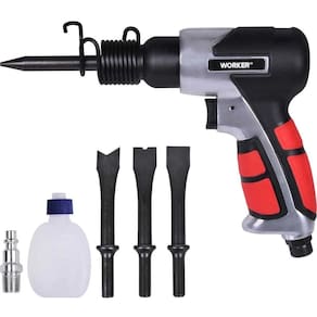 Características do Martelete Rebarbador Pneumático Worker: - Aderência ergonômica para conforto e estabilidade;- Gatilho de ação positiva e regulador de ar embutido para potência simples e controle de velocidade;- Entrada de ar filtro amassado para impedir que sujeira e detritos danifiquem a ferramenta;- Mola padrão de troca rápida para agilidade e facilidade na troca de cinzéis;- Escape dianteiro.