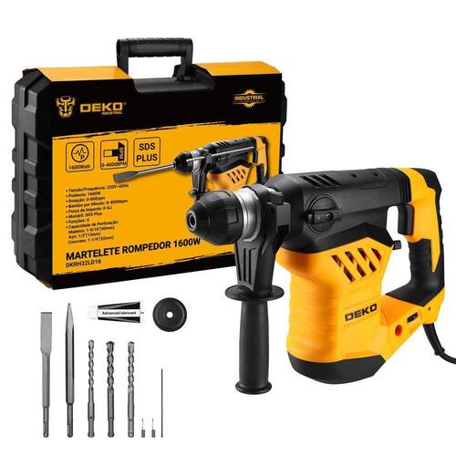 O Martelete Perfurador Rompedor 2 em 1 SDS Plus 1600W 6J DEKO é a ferramenta que chega pronta para entregar força e produtividade. Com 1600W de potência, mandril SDS-Plus e 6 Joules de impacto, ele encara perfuração e demolição leve em concreto, alvenaria, aço e madeira com uma disposição de dar gosto. É a ferramenta certa para reformas, instalações, manutenções e qualquer tarefa que exija força de verdade. Com velocidade variável de 0800 rpm e impacto de 04000 bpm, o martelete perfurador rompedor entrega ritmo forte e controle total nas mãos do operador. O design reforçado reduz fadiga, enquanto a empunhadura auxiliar e o limitador de profundidade aumentam precisão e segurança. O seletor com 4 funções deixa tudo mais prático: perfuração, impacto, rompimento e a combinação de ambos. E o kit já vem pronto, sem faltar nada brocas SDS Plus, ponteira, talhadeira e maleta rígida. A capacidade de perfuração do martelete perfurador 1600W também impressiona: 40 mm em concreto, 32 mm em madeira e 13 mm em aço. É perfeito para eletricistas, instaladores, pedreiros e montadores que querem uma única máquina para várias etapas da obra. Serve para fazer furos de passagem, instalar dutos, fixar chumbadores, mexer na alvenaria e até fazer pequenos rompimentos sem esforço. E para fechar tudo com tranquilidade, comprando seu martelete DEKO na Loja do Mecânico, você leva 1 ano de garantia, suporte técnico especializado, troca fácil e um pós-venda que realmente funciona. É potência, durabilidade e confiança reunidas em uma ferramenta pronta para encarar o batente todos os dias. Compre o Martelete Perfurador Rompedor 2 em 1 SDS Plus 1600W DEKO na Loja do Mecânico e ganhe mais força e produtividade em qualquer obra! Qual problema ele soluciona? O Martelete Perfurador Rompedor 2 em 1 SDS Plus 1600W 6J DEKO resolve a necessidade de perfurar e romper concreto, alvenaria, aço e madeira com rapidez e segurança, substituindo ferramentas fracas ou improvisad