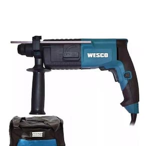 Martelete Rotativo Impacto 620w Ws3160k Wesco + BolsaCARACTERÍSTICAS:- Possui seletor de controle de velocidade e alavanca para avançar ou reverter o sentido de perfuração- Empunhadura ergonômica com revestimento de borracha- Reversível: Mais controle no seu trabalho- Punho auxiliar: Tenha mais firmeza com este acessório- Medidor de profundidade metálico: Meça a profundidade de forma fácil e ágil- Velocidade variável: Maior comodidade para parafusar e furar- Over Load: Proteção do motor evitando o desgaste- Botão Trava: Continue furando sem precisar pressionar o gatilhoESPECIFICAÇÕES:- Marca: Wesco- Referência: WS3160- Tensão: 110 ou 220V (especificar no pedido)- Potência: 620W- Velocidade sem carga: 0 ¿ 1.000/min- Energia de impacto: 1.5J- Tipo de mandril: SDS-Plus- 2 Funções: Furadeira com ou sem impacto- Número de impacto: 0 ¿ 4.600/min- Capacidade máxima de perfuração::: Madeira 30mm:: Aço: 13mm:: Alvenaria: 20mm- Peso máquina: 2,3Kg- Peso bruto: 4 KgITENS QUE ACOMPANHAM:- 1 Martelete Rotativo impacto 620W- 1 Bolsa- 1 Empunhadura auxiliar- 1 Limitador de profundidade- 1 Manual em português e certificado de garantia*IMAGENS MERAMENTES ILUSTRATIVAS*