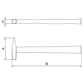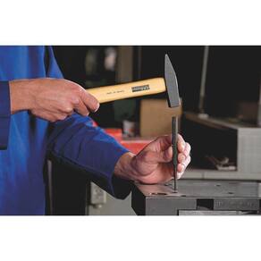 Cabeça forjada em aço especial. Têmpera na face de impacto e na pena. Base e pena polidas e envernizadas. Cabeça com pintura eletrostática. Fixação por cunha metálica. Cabo de madeira envernizado.DIN 1041. Os martelos são montados em prensas hidráulicas e a fixação da cabeça do martelo no cabo é melhorada com a inserção de uma cunha metálica. A resistência da fixação é aprovada mediante os ensaios de tração. Os martelos são submetidos a um processo de têmpera localizada para ter uma dureza adequada na face de impacto e nas penas, a fim de suportar o uso contínuo por longos períodos. Ensaios de dureza são realizados periodicamente para garantir a qualidade das peças produzidas. A fim de verificar a integridade do material após o tratamento térmico aplicado nas cabeças de martelos e marretas, são realizados, ainda, os ensaios de impacto e análise de partículas magnéticas. Golpear punções e pinos, e para rebitar, deformar ou endireitar metais não endurecidos. As ferramentas são produzidas e testadas conforme normas específicas.