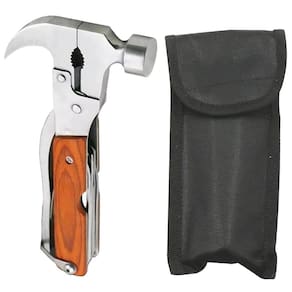 Características do Martelo Multifunção: Fabricado em aço inox resistente a corrosão, cabo com madeira; Equipamento que não pode faltar no seu acampamento, pescaria, ciclismo, montanhismo, viagens e outras atividades externas como também em casa ou no trabalho, é multifunção; Acompanha bolsa em nylon reforçado para prender na bainha do cinto;