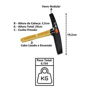 01 Marreta Premium Cabo de Madeira Envernizado Cunha Aço 500g.