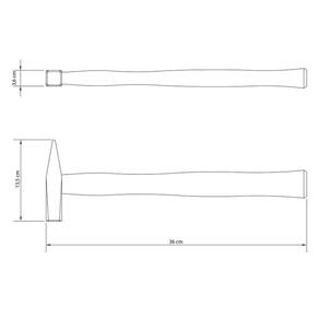 A cabeça de 1000 gramas é forjada em aço especial e é fixada ao cabo em madeira envernizada através de uma cunha metálica, característica que garante maior segurança ao usuário.