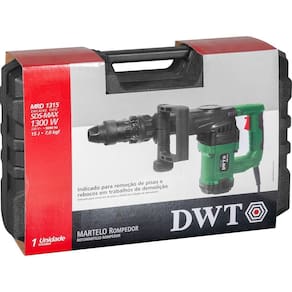1 Martelo rompedor. Acompanha: 1 maleta plástica, 1 punho auxiliar, 1 chave 2 pinos e 1 chave allen de 6 mm