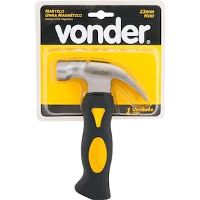 Possui encaixe rebaixado imantado para apoio do prego com cabeça, além de cabo em fibra com revestimento em borracha termoplástica