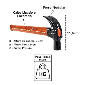 Marreta Premium Cabo de Madeira Envernizado Cunha Aço 500g Marreta Premium Cabo de Madeira Envernizada Cunha Aço 500g, é uma ferramenta maior e mais pesada do que um martelo comum. É utilizado por quem precisa de força para quebrar ou demolir uma superfície. Sempre possui uma cabeça de ferro para causar ainda mais impacto. Indicação de Uso:As marretas são utilizadas na construção civil e em oficinas mecânicas. São ferramentas de impacto para quebras. Medidas: (Dimensão conforme norma ABNT 15.872 de 2003)Medidas da Cabeça: 3,1x7,8cm (AxL).Altura Total com Cabo: 27cm.Peso Total: 0,510Kg. Orientação de Segurança:- Use sempre óculos e outros materiais de proteção de acordo com a tarefa a ser executada.- Nunca utilize ferramentas com cabo solto ou danificado. Madeira de Lei:Madeira de Lei designa, em sentido mais amplo, as madeiras que, por sua qualidade e resistência, principalmente ao ataque de insetos e umidade, duram mais que as outras. São aptas para emprego em construção civil, naval, confecção de móvel, instrumentos musicais. Especificações:Material do Cabo: Madeira de Lei Lixado e Envernizado.Material da Cabeça: Ferro Nodular Envernizado.Fixação do Cabo: Cunha em Aço.Pintura por Imersão. Itens Inclusos:01 Marreta Premium Cabo de Madeira Envernizado Cunha Aço 500g. Código: 346MSULProdutoLojaPlast.