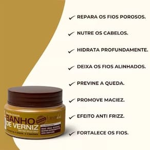 A Máscara Banho de Verniz Forever Liss 250g contém princípios ativos que reparam os fios, hidratam e selam as cutículas, de forma a manter os cabelos saudáveis e hidratados por muito mais tempo. Com Óleo de Coco, D’Pantenol, Phytoqueratina, ela trata a porosidade dos cabelos, que é responsável pelo aspecto opaco dos fios. Ao nutrir e hidratar, proporciona maciez, leveza, fios alinhados, redução do frizz e um brilho incrível que vai elevar a beleza dos seus cabelos. Além disso, ele realça a cor e fortalece os fios evitando que eles fiquem quebradiços.
