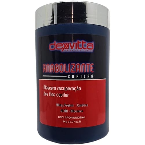 O Anabolizante Capilar Dexvitta foi desenvolvido para dar energia e vida aos cabelos que tem problemas com quimicas, ele tem no seu principio ativo - WHEY PROTEIN - CREATINA - BCAA - ALBUMINA dando mais vida e cabelos tratados, uma força que só ele consegue rejuvenescer os fios capilar. Máscara Anabolizante DexVitta proporciona uma extensa gama de nutrientes que trata o ressecamento, opacidade, porosidade e melhoram a elasticidade dos fios, deixando os cabelos mais fortes, encorpados, alinhados e resistentes à quebra