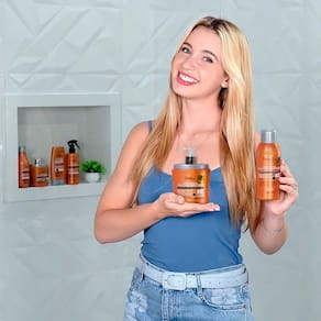 Contém princípios ativos como Ceramidas, Queratina Brasileira, Geléia Real e Aminoácidos, que nutrem profundamente os fios, selando as cutículas e evitando problemas como frizz e volume indesejado. Com ação gradual, a cada você perceberá os seus cabelos ainda mais lindos e saudáveis. O produto é termoativado, por isso, é importante fazer a finalização com secador e prancha para intensificar ainda mais os benefícios. Fique tranquila, pois ele já possui proteção térmica. É liberado para low-poo e pode ser utilizado em todos os tipos de cabelo.