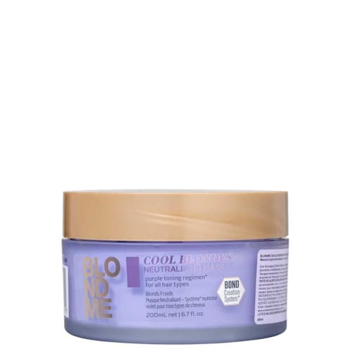 ========================================================================================= Máscara Capilar Schwarzkopf Cool Blondes Neutralizante BlondMe 200ml Máscara para cabelos loiros frios. Schwarzkopf Professional BlondMe repara a estrutura, neutraliza o amarelado com brilho e desembaraço. A máscara Schwarzkopf Professional BlondMe conta com a nova tecnologia Advanced Bonding System, que constrói novas pontes na fibra capilar fragilizada e restaura a estrutura interna dos fios com força e de forma duradoura. Além disso, ingredientes condicionantes desembaraça e facilita o pentear do cabelo com o realce intenso do brilho da cor. Advanced Bonding System: tecnologia com citrato de magnésio que equilibra o pH dos fios e promove a criação de novas pontes estruturais na fibra capilar que garantem o fortalecimento das áreas enfraquecidas. Cabelo mais resistente e fortalecido, macio para desembaraçar e com o tom de loiro preservado e luminoso. Conselho de Aplicação Após lavar o cabelo com o shampoo Schwarzkopf Professional Blondme, retire o excesso de água dos fios com a toalha e distribua a máscara pelo comprimento e pontas. Massageie e deixe agir de 5 a 10 minutos. Enxágue completamente e complete com o condicionador da linha. ========================================================================================= Anúncio composto por: 01unid. Máscara Capilar Schwarzkopf Cool Blondes Neutralizante BlondMe 200ml Sku Interno: IS01471 Agradecemos a preferência. Marca: Não Informado Ean: 6015214588187
