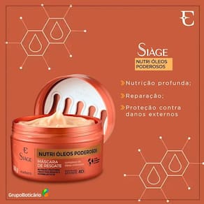 Compre na Drogaria Araujo Máscara Capilar Eudora Siàge Nutri Óleos Poderosos. Para cabelos danificados, proporciona um tratamento de nutrição e reparação profunda. Aproveite!