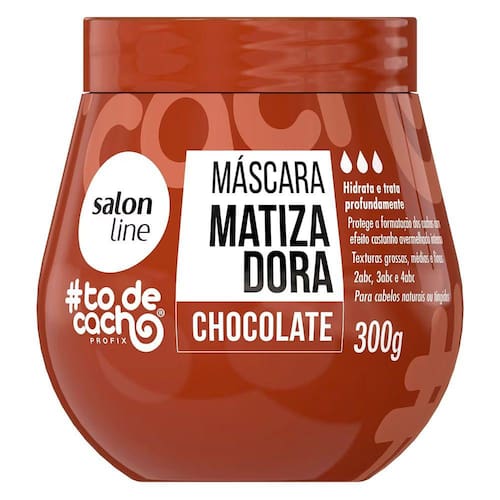 A Máscara Capilar Matizadora Salon Line Choco To De Cacho 300g foi desenvolvida para cabelos vermelhos, ondulados, cacheados, crespos, crespíssimos ou em transição. Sua exclusiva fórmula é composta por vários ativos que proporcionam um cuidado especial com os cabelos castanhos. Possui fórmula enriquecida com blend de cacau e óleo de amêndoas que, juntos, promovem ação extra condicionante, efeito castanho com nuance avermelhada de longa duração, brilho e maciez profunda. Além disso, conta com a eficaz tecnologia PROFIX que garante hidratação, força e saúde para cachos e crespos.