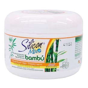 Máscara Capilar Nutritivo com Bambu Silicon Mix 225G Máscara para cabelos opacos e quebradiços. Silicon Mix Bambú Tratamento Capilar Nutritivo nutre, regenera e fortalece os fios. Ele previne a quebra e as pontas duplas. Livre de crueldade Este produto é feito sem machucar nenhum animal. É vegano Este produto é feito com elementos naturais de origem vegetal. Silicon Mix Bambú Tratamento Capilar Nutritivo fecha as cutículas capilares, tornando a superfície das fibras capilares mais suaves. Sua fórmula é rica em óleos naturais, vitaminas. Aumenta a resistência do cabelo com brilho e toque macio. Modo de utilizar: Após lavar o cabelo com o Shampoo Silicon Mix Tratamento Nutritivo de Bambú, distribuir no cabelo molhado aplicando a quantidade de 1 a 2 vezes em todo o comprimento e nas pontas do cabelo e massagear delicadamente. Deixar agir de 2 a 3 minutos dependendo da condição do cabelo, enxaguar abundantemente. Para melhores resultados use também o Silicon Mix Leave-in Nutritivo de Bambú.