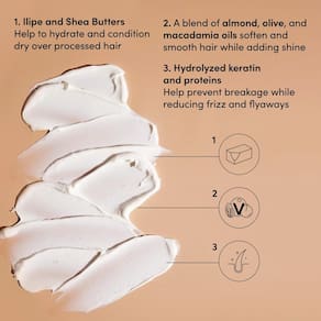 Procurando uma máscara hidratante que cure, não esconda, tudo o que seu cabelo passou? Máscara e você receberá. Esta máscara de cabelo rica e amanteigada para cabelos cacheados restaura a umidade, combate o frizz, repara os danos e evita a quebra de cabelos grossos após apenas um uso. Embalado com uma rica mistura de manteigas de ilipe e karité, óleos de amêndoa, oliva e macadâmia, além de queratina hidrolisada, deixa o cabelo mais macio, maleável e brilhante.