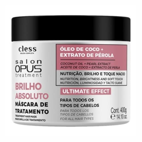 A Máscara de Tratamento Salon Opus Brilho Absoluto trata, hidrata, repara, define flexibiliza os fios. Ideal para o cuidado de todos os tipos de cabelo que precisam de brilho, nutrição, sua fórmula nutritiva revitaliza a fibra capilar, devolve o brilho e repõe vitaminas para intensificar a maciez dos fios.