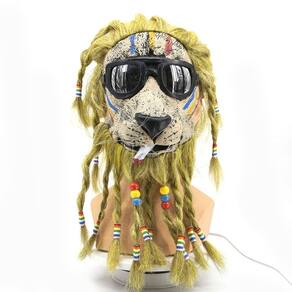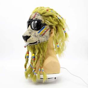 Material: Resina Tamanho: 45 x 25 cm Peso: 320 g Material: Resina Tamanho: 45 x 25 cm Peso: 320 g Feita de resina de alta qualidade, esta máscara de leão apresenta detalhes intrincados, incluindo uma juba amarela vibrante, óculos de sol e uma expressão divertida e divertida. Perfeito para cosplay, Halloween ou festas temáticas à fantasia, oferecendo uma visão ousada e bem-humorada da tradicional máscara animal. A máscara inclui miçangas coloridas e um design exclusivo com fios de crina com dreadlocks para uma aparência divertida e criativa do personagem. O tamanho único serve para a maioria dos adultos, garantindo um uso confortável em eventos e festas. Pesando apenas 320 g, é leve e durável, facilitando o uso por longos períodos sem desconforto.