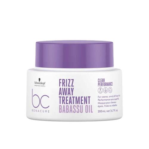 Máscara de Hidratação Bonacure Clean Frizz Away 200ml Máscara para cabelos com frizz. Schwarzkopf Professional BC Bonacure Clean Performance Frizz Away nutre intensivamente, proporcionando alinhamento aos fios. A Máscara Capilar Schwarzkopf Professional BC Bonacure Clean Performance Frizz Away melhora o desembaraçar e o pentear através de uma fórmula antifrizz que suaviza a superfície do cabelo e recupera a maleabilidade instantaneamente, além de dar muito brilho. Ele é ideal para tratar cabelos grossos. Produto vegano, livre de Sulfatos, Silicones e Parabenos.