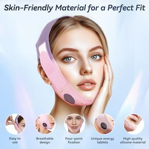 Fita facial em V Line - Consiga uma face em V perfeita: a máscara V-Line usa força física para moldar o contorno dos rostos femininos - Silicone de grau alimentício e carbono ativado: A alça facial é feita de material de silicone 100% de grau alimentício flexível de alta qualidade (sem ingredientes de látex), adequada para todos os tipos de pele e hipoalergênica - Adequado para todos os formatos de rosto: o design do rosto 8D se adapta perfeitamente à estrutura facial humana, e a abertura lateral permite conforto na orelha, melhorando a usabilidade. Equipado com fita mágica de alta viscosidade - Desfrute de uma pele facial saudável: você pode usar a fita adesiva enquanto lê, trabalha ou assiste TV. Mantenha sua pele firme em tempo fragmentado sem desperdiçar seu tempo extra. - A persistência deixa você bonita: Estamos sempre comprometidos com sua satisfação. Deixe-se ficar bonita em silêncio. Recomenda-se usar esta máscara facial em V por 10 a 30 minutos por dia. (Sinta-se à vontade para entrar em contato conosco se tiver alguma dúvida. Oferecemos atendimento ao cliente online 24 horas por dia, 7 dias por semana.)