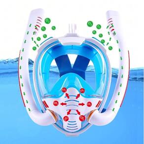 O snorkel duplo permite a respiração natural na superfície sendo perfeito para mergulhos leves, observação marinha e treinos de respiração.