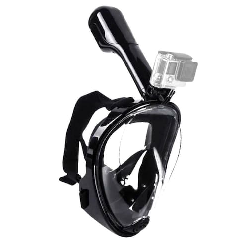 Esta máscara inovadora proporciona, graças as suas grandes dimensões, um amplo campo de visão de 180°. Para garantir que a água não entra pela parte superior do tubo, ela está equipada com um mecanismo obstruindo a parte superior do tubo durante a imersão. A parte superior do tubo é visível para evitar as colisões na superfície, e ainda conta com um adaptador para fixar da GoPro e demais modelos de câmeras de ação, para que você consiga registrar todas as suas aventuras debaixo d'água.