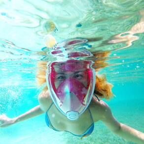 Com essa máscara rosa de mergulho livre você poderá mergulhar e respirar tranquilamente. Ela possui uma tecnologia de Fluxo de Ar Duplo que lhe permite respirar tanto pela boca, quanto pelo nariz. Também possui um sistema antiembaçante e de estanqueidade, que evita a entrada de água pela parte superior do tubo. Veja o tamanho ideal medindo seu rosto conforme indicado na foto.