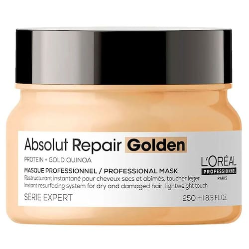 A Máscara Absolut Repair Gold Quinoa + Protein L'Oréal Professionnel atua na reparação da fibra capilar extremamente fragilizada para que o cabelo revele uma aparência mais saudável. Seu visual ganha muito mais brilho e um toque macio incrível.