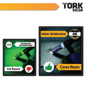 Máscara de solda escurecimento automatico arc solar 4k cores reaisId: msea 601A máscara de solda msea 601 4k super tork é o conjunto de segurança e tecnologiaVisor de alta definição 4k, cores reais que permitem ao soldador realizar soldas mais precisas, fácil visão no processo de soldagem.Não é necessário remover o capacete para enxergar os resultados, a tecnologia 4k oferece nitidez e clareza ao soldador. Ganho na produtividade e acabamentoMáscara ideal para soldas mma eletrodo revestido, tig, mig mag e corte plasma.Recursos da máscara de solda msea 601: Ideal para soldas mma eletrodo revestido, tig, mig mag e corte plasma; Bateria econômica com a placa solar frontal; Tempo de resposta de 0,0004 segundos; Display de escurecimento automático; Nível de escurecimento din 11 visor 4k alta definição; 2 sensores de abertura; Amplo visor 90x35 mm; Indicador de baixa bateria; Bateria removível; Acompanha: 01 bateria extra, 01 lente interna extra e 01 lente externa extra.Dados técnicosCa: 47.303Área de visão: 90 x 35mmProteção uv/iv: escurecimento din 16 constanteEstado visível: escurecimento din 3Escurecimento: din 11Tempo de polarização: 0,0004 segundosTempo de despolarização: 0,2 0,5 segundosPeso: 0,4 kg