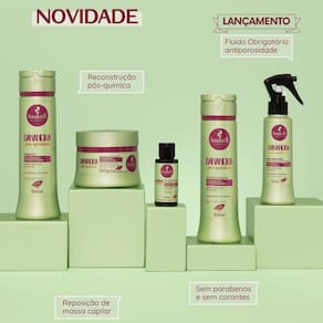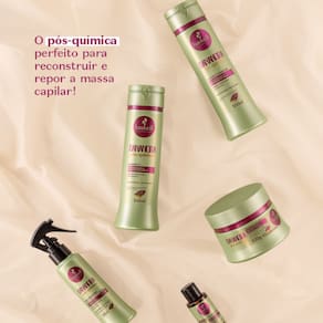 Após lavar os cabelos, aplique a máscara mecha por mecha, do comprimento às pontas. Massageie e deixe agir de 3 a 5 minutos. Se preferir, faça o uso de touca térmica. Enxágue em seguida, retirando todo o resíduo de creme dos cabelos. Potencialize os resultados utilizando toda a linha Bananeira Pós-Química.