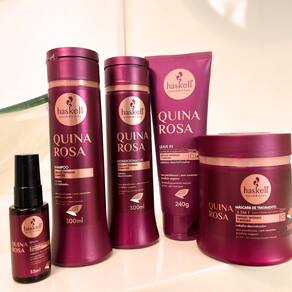 A linha Quina Rosa foi desenvolvida para revitalizar os cabelos opacos e sem vida, e promover o condicionamento intensivo dos fios. Ela proporciona brilho, maciez e possui ação antifrizz, sua formulação conta com o extrato de quina rosa, que blinda os fios das agressões externas.