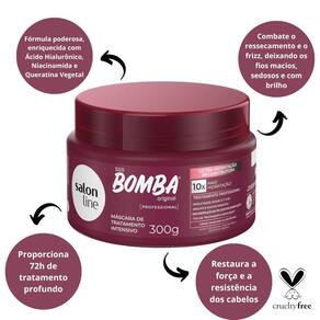 A Máscara de Tratamento Intensivo S.O.S Bomba Ultra-Hidratação Reconstrutora é a bomba que seus cabelos precisam para explodir em saúde e vitalidade. Sua fórmula poderosa, enriquecida com Ácido Hialurônico, Niacinamida e Queratina Vegetal, age profundamente para Hidratar intensamente os fios por até 72 horas, combatendo o ressecamento e o frizz, deixando seus fios macios, sedosos e com brilho. Reconstrói os danos causados por químicas, colorações, ferramentas de calor e agressores externos, restaurando a força e a resistência dos seus cabelos.