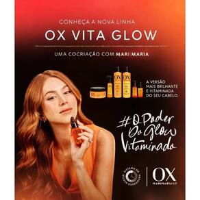 A Máscara de Tratamento Mari Maria Hair Vita Glow é ideal para cabelos ressecados e enfraquecidos. A combinação do blend de óleos ricos em vitaminas* A, C, D, E, complexo B, ômega 3 e 6 com o Sistema OX Beleza Duradoura, é a fórmula certa para nutrir os fios auxiliando no crescimento saudável dos cabelos. Sistema OX Beleza Duradoura: É uma tecnologia exclusiva, capaz de liberar sequencialmente os ingredientes, proporcionando um tratamento prolongado aos fios.Modo de UsoApós o uso do Shampoo, aplique a Máscara de Tratamento OX Mari Maria Vita Glow mecha a mecha deixe agir por 5 minutos e enxágue. Para melhores resultados, utilize toda a linha OX Mari Maria Vita Glow.ComposiçãoAQUA; CETEARYL ALCOHOL; DIMETHICONE; BIS-(ISOSTEAROYL/OLEOYL ISOPROPYL) DIMONIUM METHOSULFATE; STEARAMIDOPROPYL DIMETHYLAMINE; CYCLOPENTASILOXANE; CETRIMONIUM CHLORIDE; PARFUM; DIPROPYLENE GLYCOL; LACTIC ACID; DIMETHICONOL; BISAMINO PEG/PPG-41/3 AMINOETHYL PG-PROPYL DIMETHICONE; ETHYL LINOLEATE; ETHYL OLEATE; DISODIUM EDTA; BUTYLENE GLYCOL; BIS-LAURYL COCAMINOPROPYLAMINE/HDI/PEG-100 COPOLYMER; CRAMBE ABYSSINICA SEED OIL; PERSEA GRATISSIMA OIL*; HELIANTHUS ANNUUS SEED OIL*; GLYCERIN; AMYLOPECTIN; CI 15510; METHYLCHLOROISOTHIAZOLINONE/METHYLISOTHIAZOLINONE; CITRUS AURANTIUM DULCIS CALLUS CULTURE EXTRACT; COCOS NUCIFERA OIL*; LITHOTHAMNION CALCAREUM EXTRACT; LINUM USITATISSIMUM SEED OIL*; HYDROLYZED WHEAT PROTEIN; ZEA MAYS STARCH; ARGANIA SPINOSA KERNEL OIL*; MACADAMIA TERNIFOLIA SEED OIL*; OLEA EUROPAEA FRUIT OIL*; PANTHENOL; CI 17200; BIOTIN; CITRONELLOL; COUMARIN; GERANIOL; HEXYL CINNAMAL; d-LIMONENE; LINALOOL. *Vitaminas presentes dentro dos ingredientes: Abacate, Girassol, Coco, Linhaça, Argan, Macadâmia e Oliva.