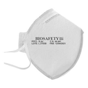 Respirador semifacial descartável, classe PFF2 ? S, modelo dobrável, sem válvula de exalação. Composição: Confeccionado em quatro camadas, sendo: camada externa de fibra sintética de polipropileno; camada meio de fibras sintética estrutural; camada filtrante de fibra sintética Meltblown com tratamento eletrostático, camada interna de fibra sintética de contato facial. Com tirantes de cabeça de elástico para sustentação da peça facial e clip nasal interno em metal revestido de plástico. C.A: 44.441