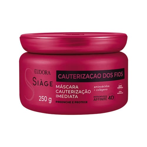 Máscara Capilar Siàge Cauterização dos Fios 250g A Máscara Capilar Siàge Cauterização dos Fios repõe a hidratação em 5 minutos e garante selagem imediata das cutículas para cabelos 3x mais macios. Sua fórmula possui Aminoácidos e Colágeno, que age preenchendo as áreas fragilizadas do fio, tornando sua textura mais uniforme; e restaurando a barreira natural dos cabelos, protegendo os fios e impedindo que voltem a ser danificados. Pode ser aplicado em todos os tipos de cabelos para garantir benefícios como: -Cabelos cauterizados desde a primeira aplicação; -Restauração da textura das cutículas capilares, proporcionando cabelos extremamente macios, com brilho e bem tratados, sem enrijecer os fios; -Poder de ação gradual: cabelos mais bem cuidados a cada uso. A Máscara Capilar Siàge Cauterização dos Fios entrega redução da porosidade dos fios, cabelos uniformes e macios.