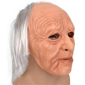 Máscara facial completa de látex Cosplay Headgear para avó de cabelos brancos